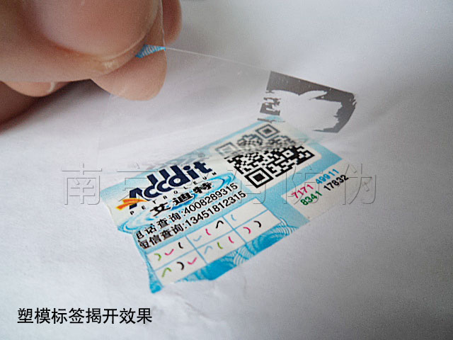 比較好的防偽材質(zhì)要數(shù)塑膜了,能夠很好的防撕。文字內(nèi)容是印在標(biāo)簽內(nèi)面的,貼到產(chǎn)品上后,只能揭開(kāi)表層,而文字信息都留在被貼物上了,表層也是沒(méi)有粘性的。