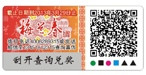 與防偽標(biāo)綜合,面積小,無需按獎(jiǎng)級(jí)分批印制 |