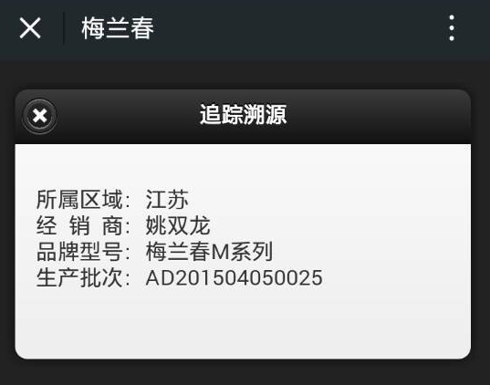 追溯主要是讓消費(fèi)者了解產(chǎn)品的來源,企業(yè)可利用追溯防止竄貨,原理是企業(yè)在后臺(tái)預(yù)先設(shè)置區(qū)域和經(jīng)銷商,在發(fā)貨給經(jīng)銷商時(shí)將產(chǎn)品的身份編碼與經(jīng)銷商對(duì)應(yīng),當(dāng)產(chǎn)品流入各大賣場(chǎng)時(shí),就能輕松查詢出該產(chǎn)品屬于XX區(qū)域XX經(jīng)銷商下的產(chǎn)品。